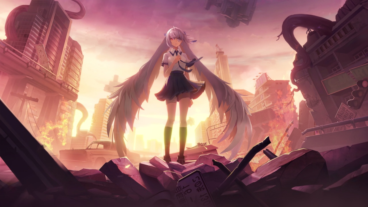 可爱的、粉色、城市、科幻、动漫女孩、二次元