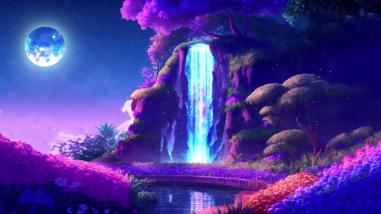 瀑布与萤火虫景观