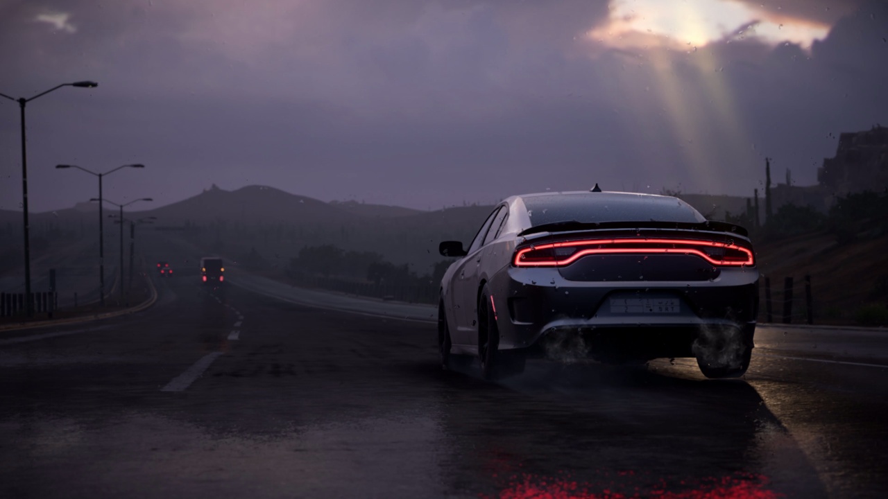 在日落时在路上开车