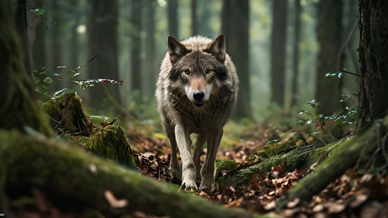 密林中的神秘访客:灰狼的凝视