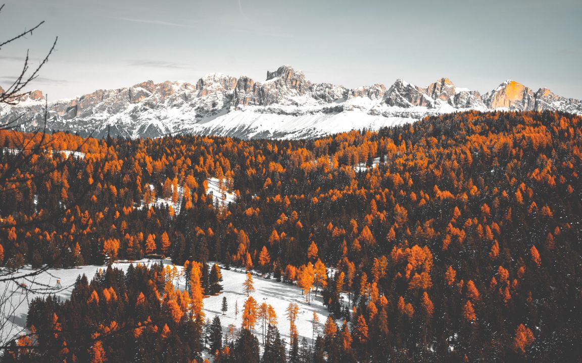 雪景与秋色森林