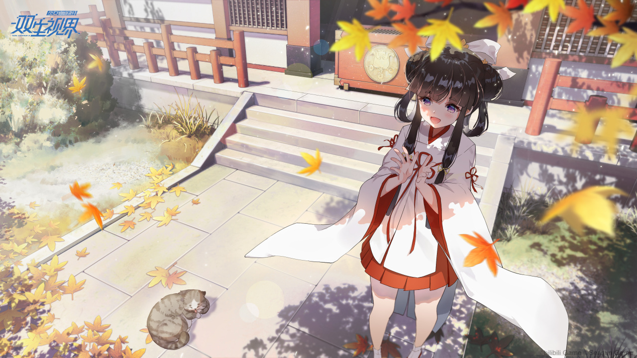 少女咖啡枪、动漫女孩、游戏、女孩、萝莉、国风、猫、叶子