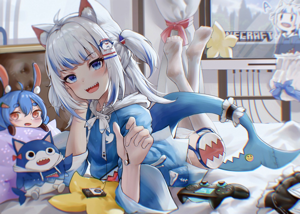 山羊女孩、猫女孩、山羊耳朵、蓝色头发、紫色头发、闭眼、原神、图片、动漫、女孩、猫耳朵、购物