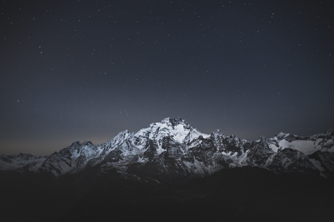 风景、自然、山脉、全景、夜晚、星星、雪、长相、薄雾