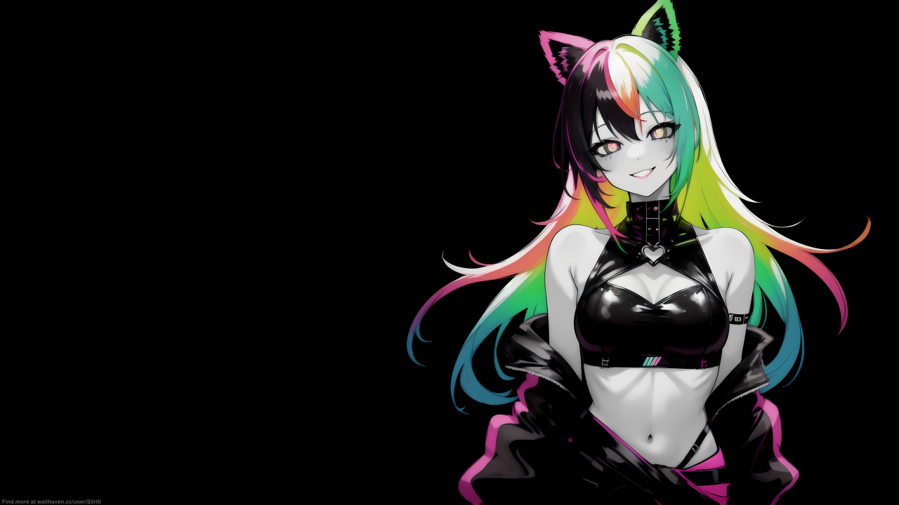 微笑、狐狸耳朵、黑色背景、深色背景、简单背景、动漫女孩、艺术、狐狸女孩、狐女