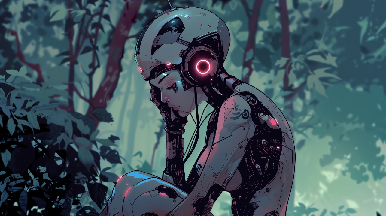 妇女、人工智能艺术、插图、机器人、悲伤