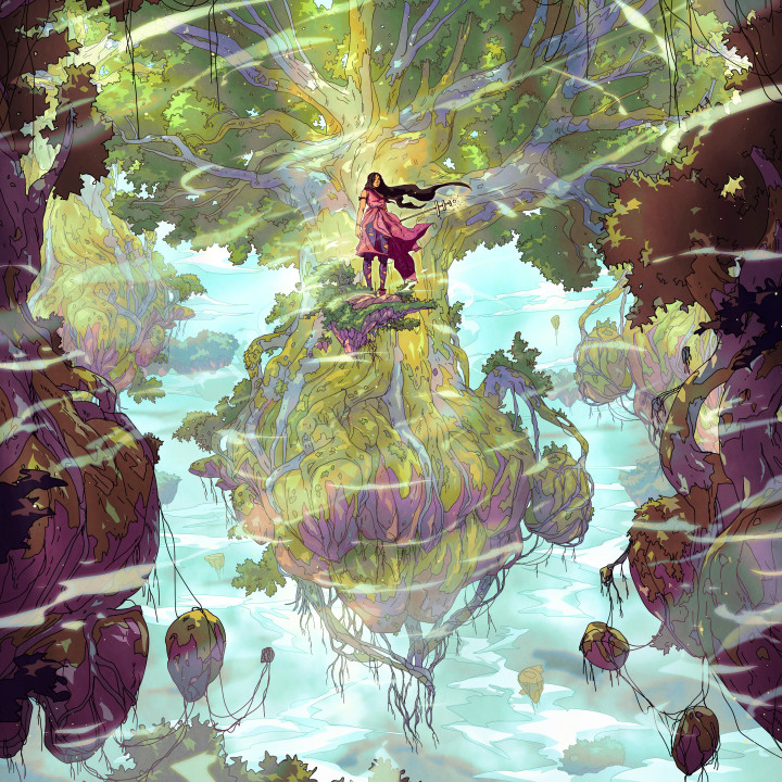 妇女、长发、黑发、数字艺术、艺术品、插图、数字、绘画、幻想艺术、自然、树木、天空、风景