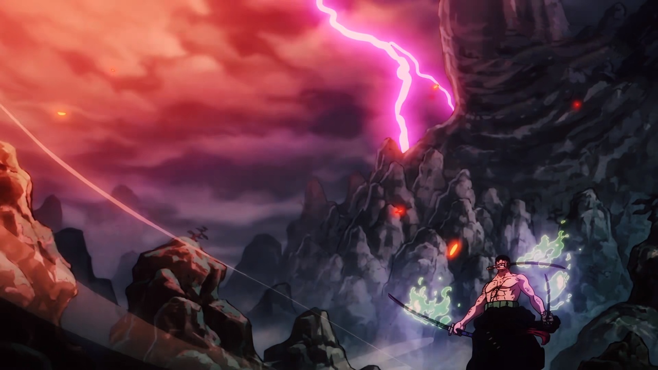 海贼王、佐罗、动漫、战斗、数字艺术、动漫男孩、剑、闪电、云、岩石