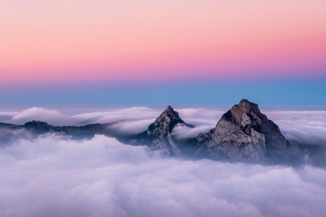 山脉、自然、五颜六色、粉色、风景、紫色天空