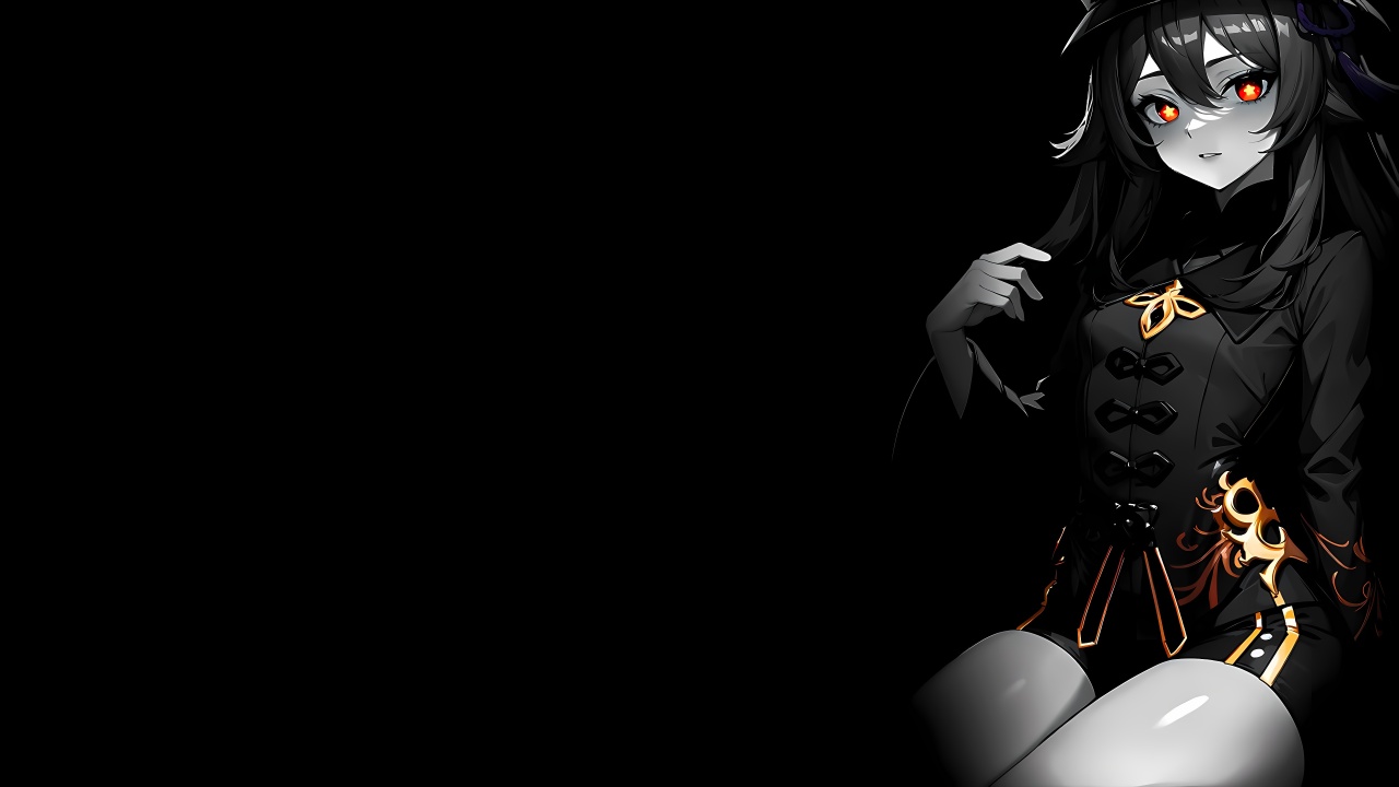 原神、胡桃、长发、嘴唇、头发、大腿、黑暗背景、动漫、动漫女孩、帽子