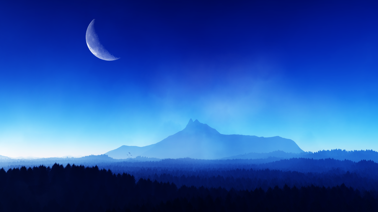 催眠、AI艺术、图片、插图、风景、天空、月亮、山脉、自然、森林、蓝色