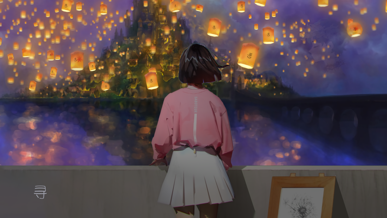 夜晚的灯笼与动漫女孩