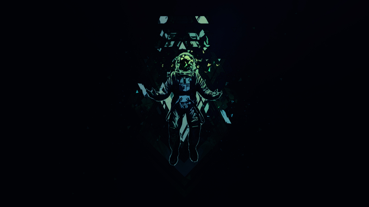 宇航员、空间、黑色、绿色、极简主义、对称
