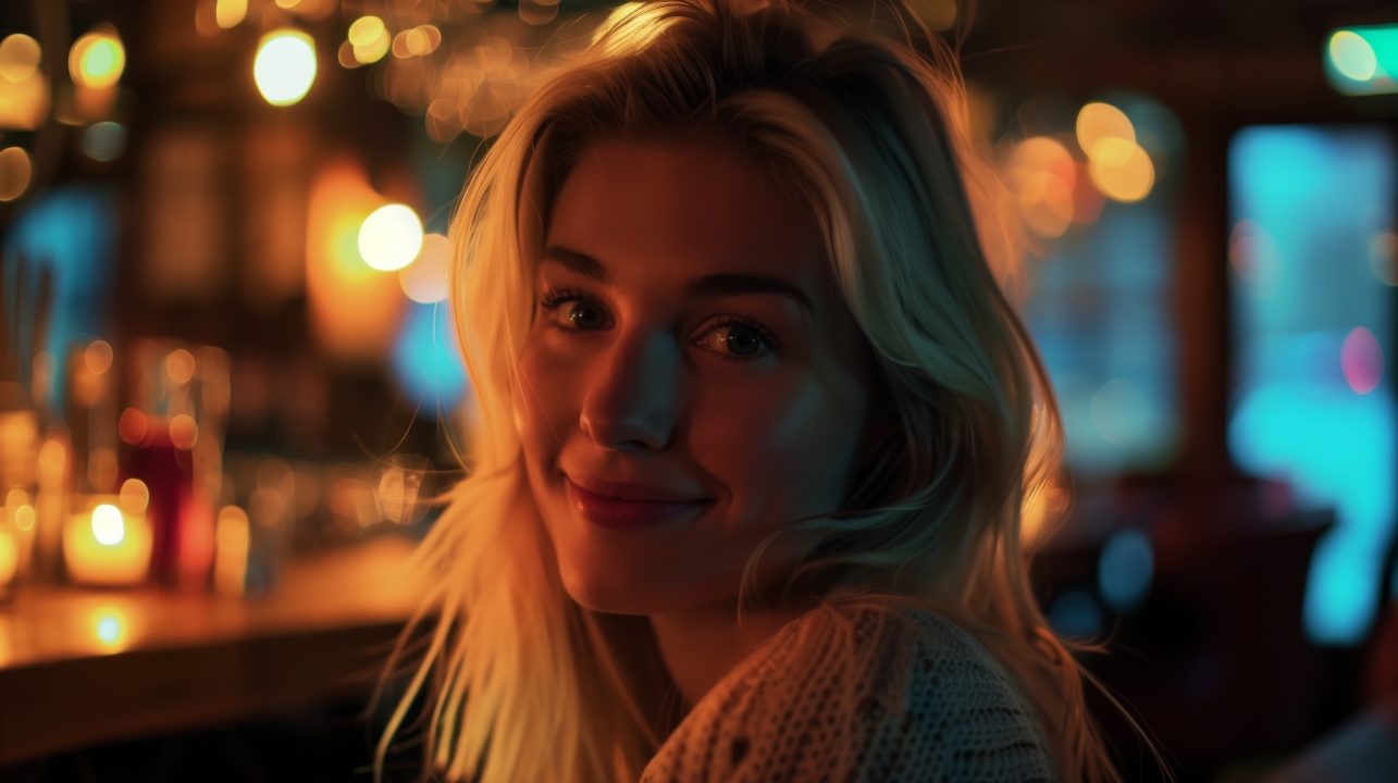 金发、看着观众、微笑、女人、人工智能艺术