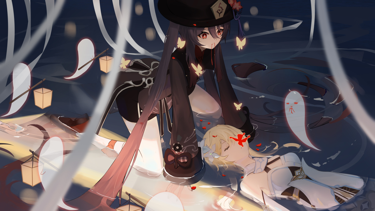 胡桃、原神、帽子、动漫、女孩、幽灵