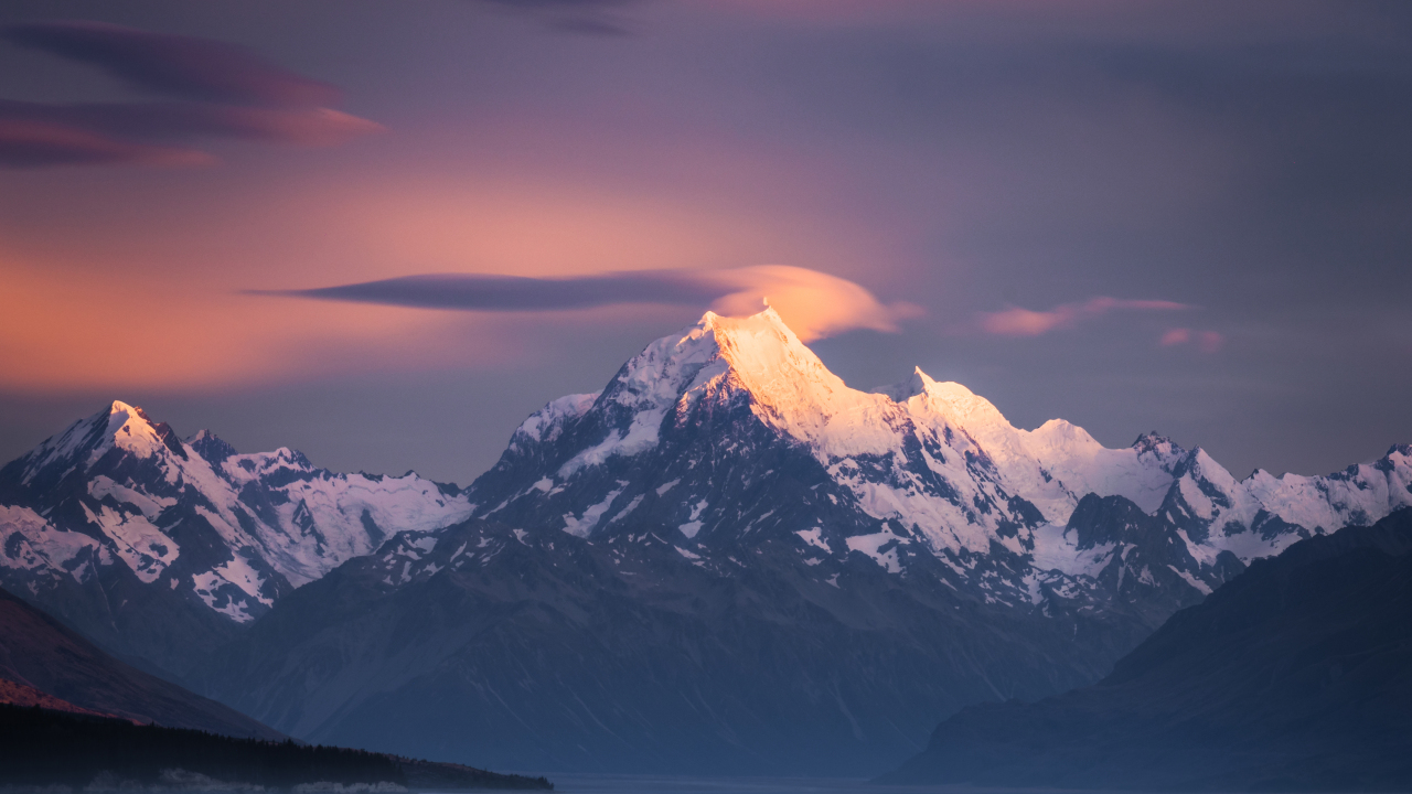 风景、自然、摄影、山脉、新西兰库克山、雪、峰、云、日落