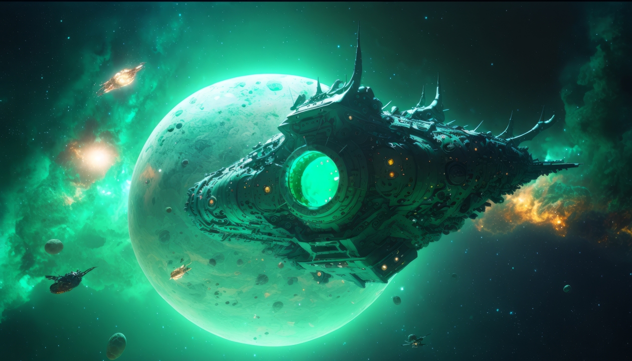 空间、宇宙、飞船、AI艺术、简单背景、超光速