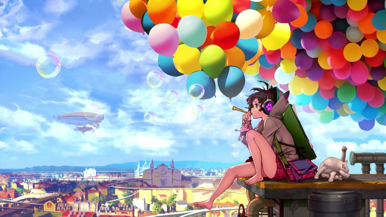 可爱的、粉色、城市、吉卜力、动漫女孩、二次元
