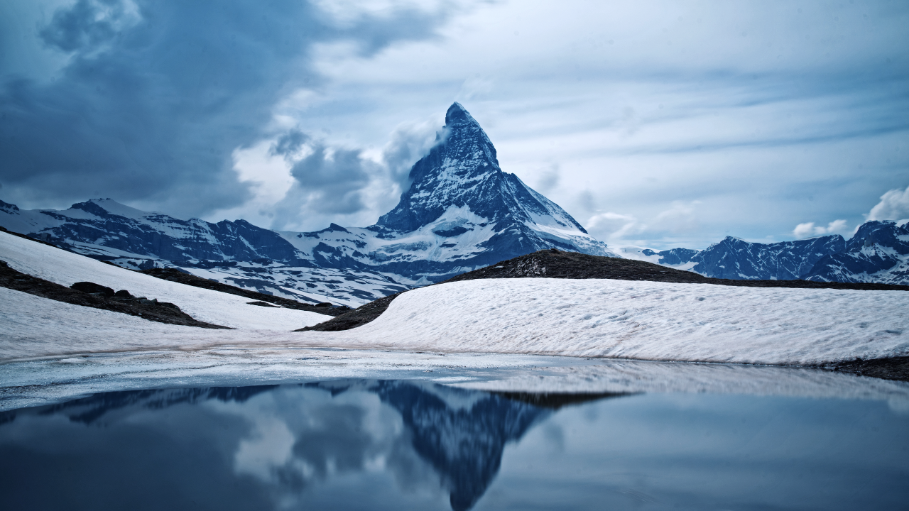 自然、景观、山脉、天空、云、冬季、雪、水、湖泊、岩石