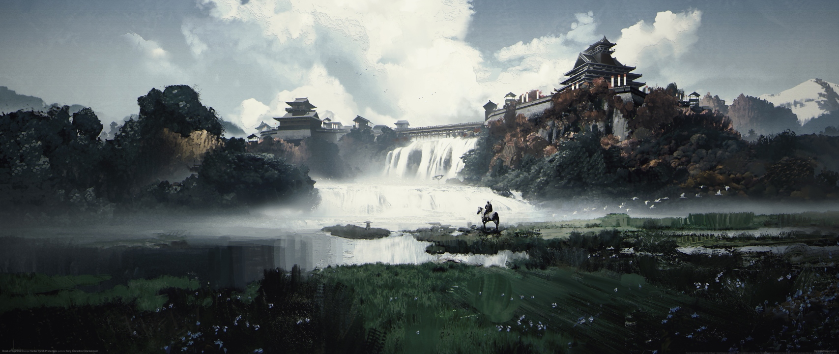电子游戏、电子游戏艺术、马、瀑布、城堡