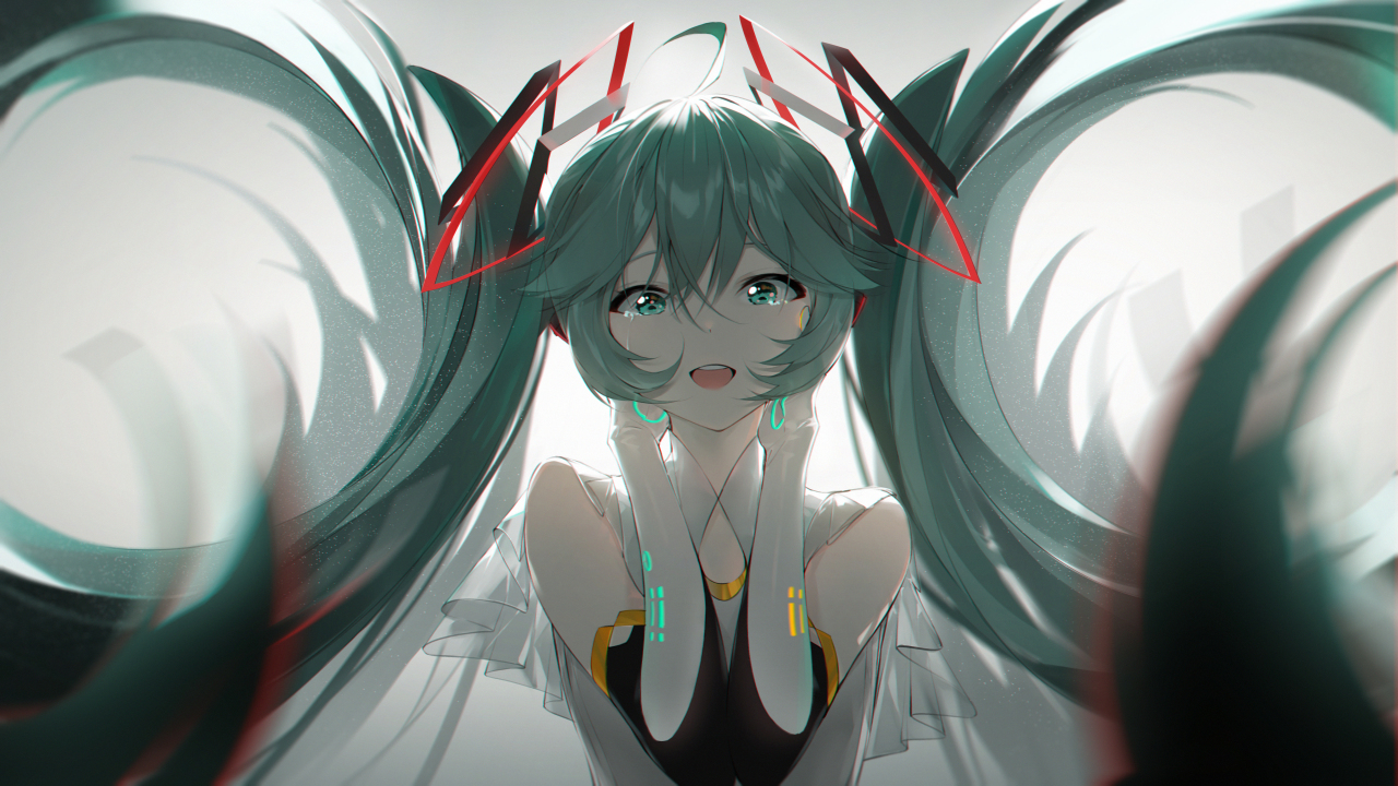 长发、眼泪、动漫、动漫女孩、小提琴、初音、双尾