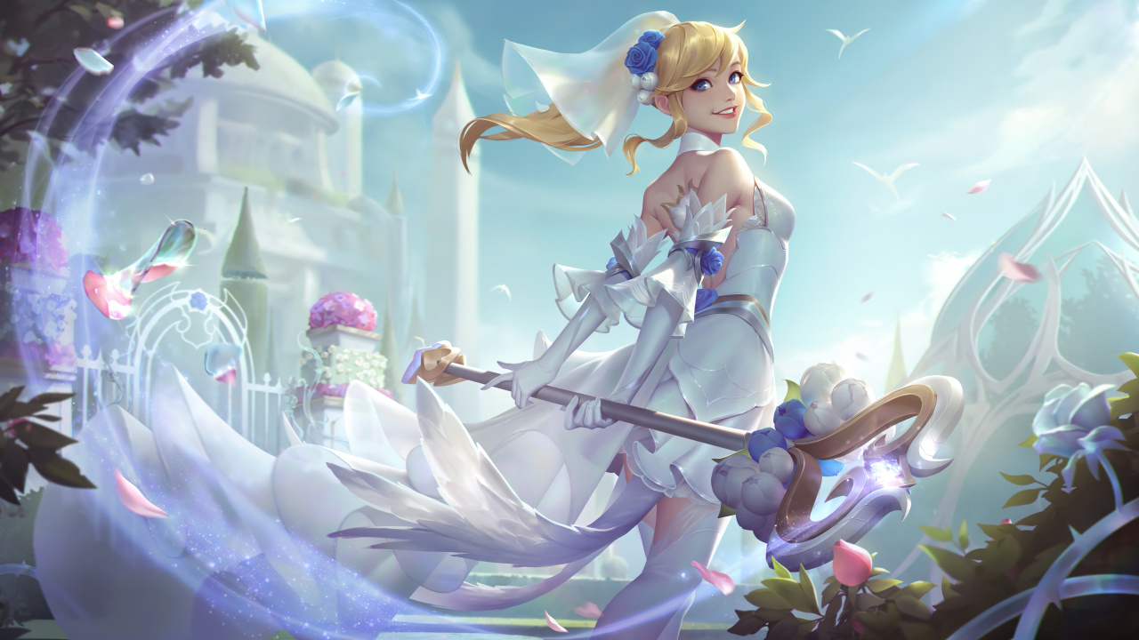 游戏、角色、眼睛、微笑、长发、水晶、玫瑰、数字艺术、英雄联盟、艺术、阳光、花瓣、连衣裙、竖琴、鲜花