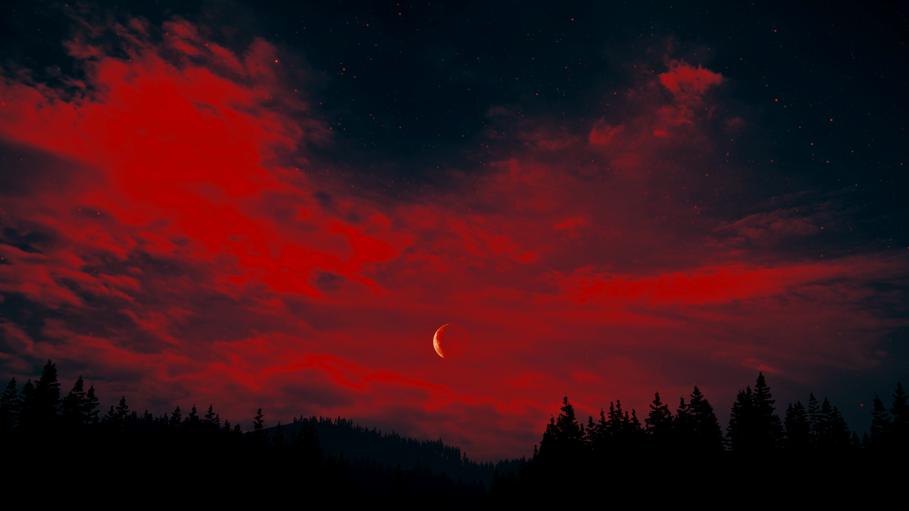 遥远、哭泣、重塑、日落、月亮、天空、森林、自然
