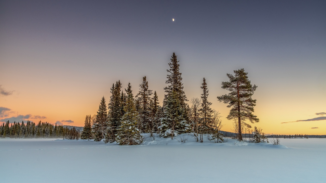 自然、景观、树木、天空、云、山脉、雪、水、日出、湖、冬季