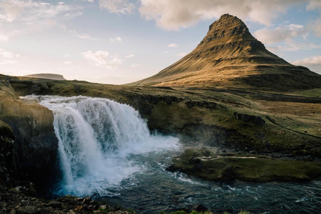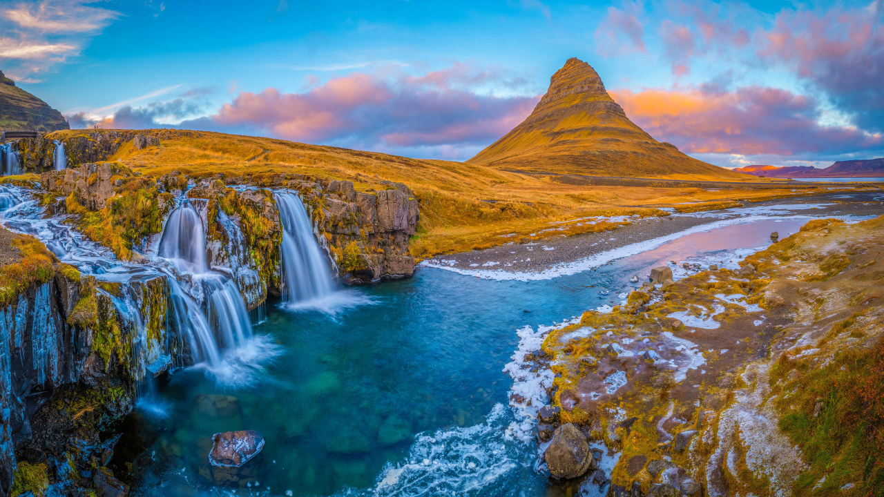 冰岛、自然、风景、瀑布、河流、山脉、水、日落、天空、云、石头、基尔朱费尔