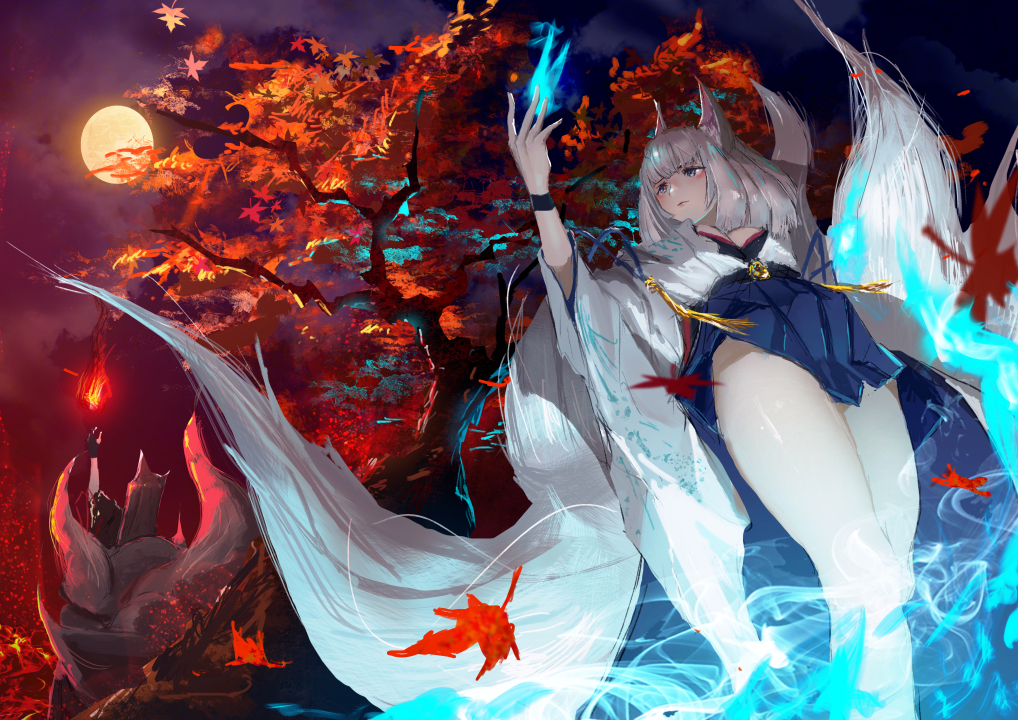 神秘的动漫女孩与秋天的风景
