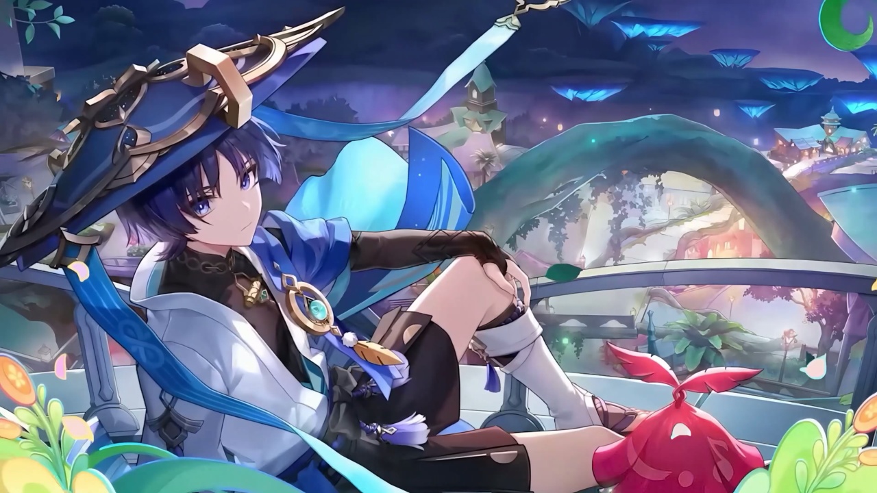 蓝头发、蓝眼睛、动漫、男孩、流浪者、原神、血液