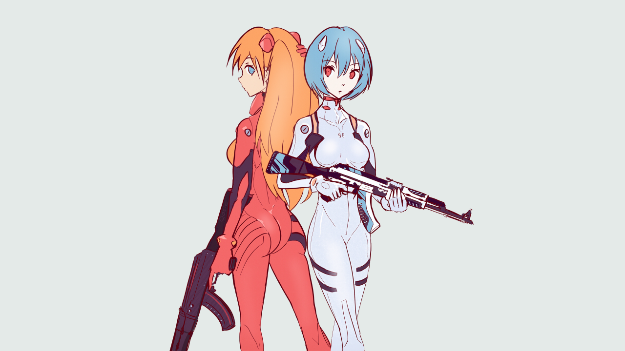 红头发、蓝头发、蓝眼睛、红眼睛、霓虹、新世纪福音、明日香、武器、外挂、西装、AI艺术、动漫、女孩、简单背景、全球攻势