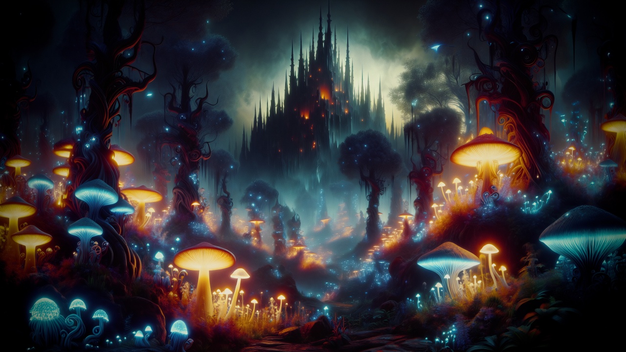 黑暗幻想、幻想城堡、蘑菇、电脑贴纸、4K贴纸