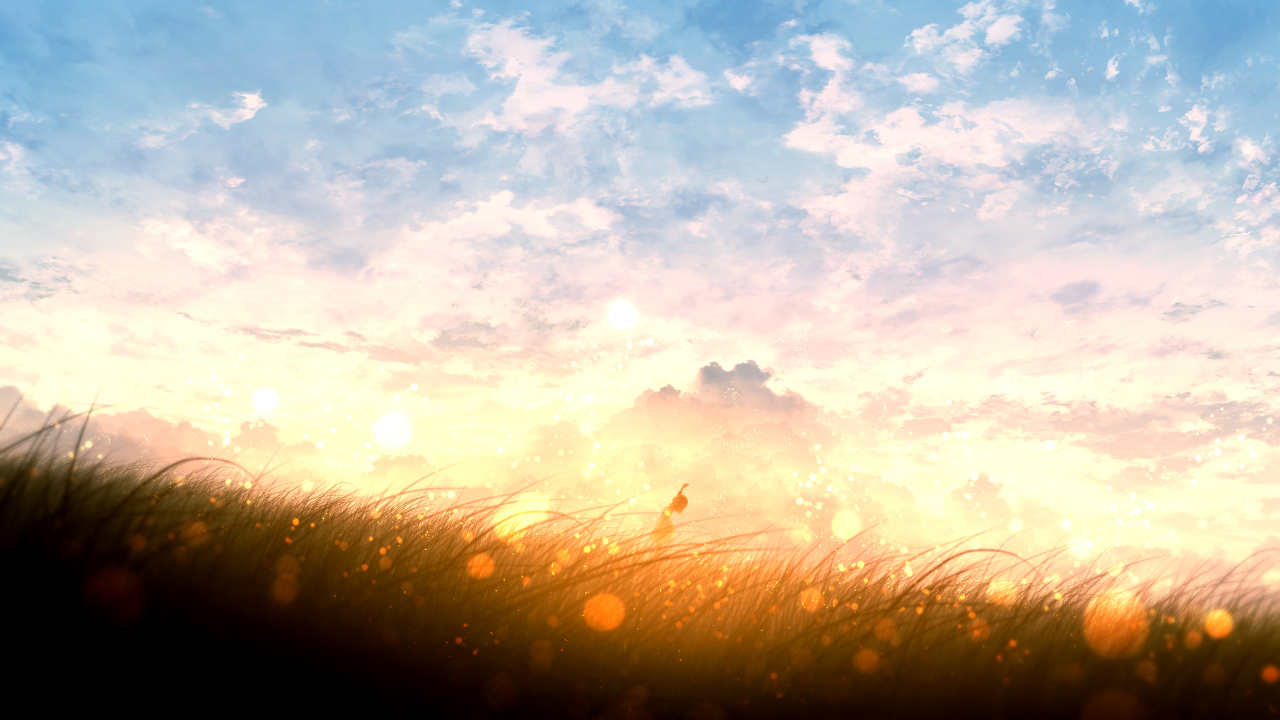 艺术家、AI艺术、云、日落、田野、天空、草地、素描、数字绘画