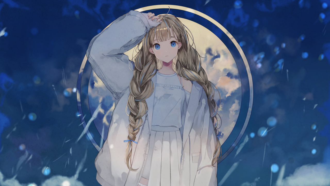金发碧眼、长发、辫子、动漫、动漫女孩、简单的背景、极简主义