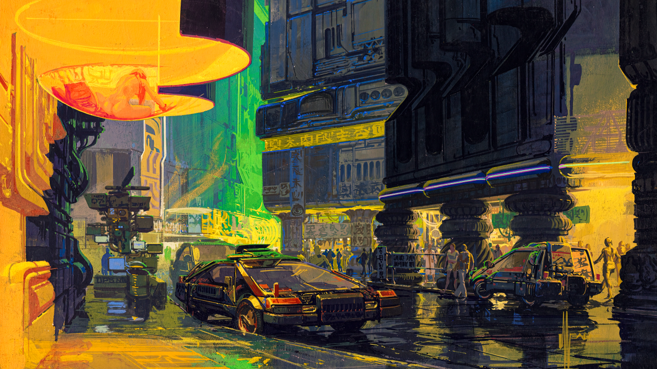 银翼、杀手、反乌托邦、街头、绘画
