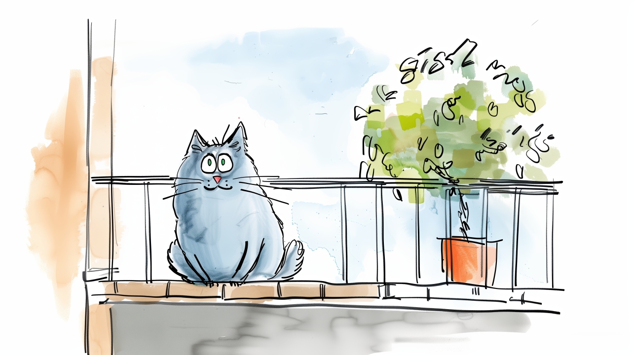 一只坐在阳台上的蓝色猫咪
