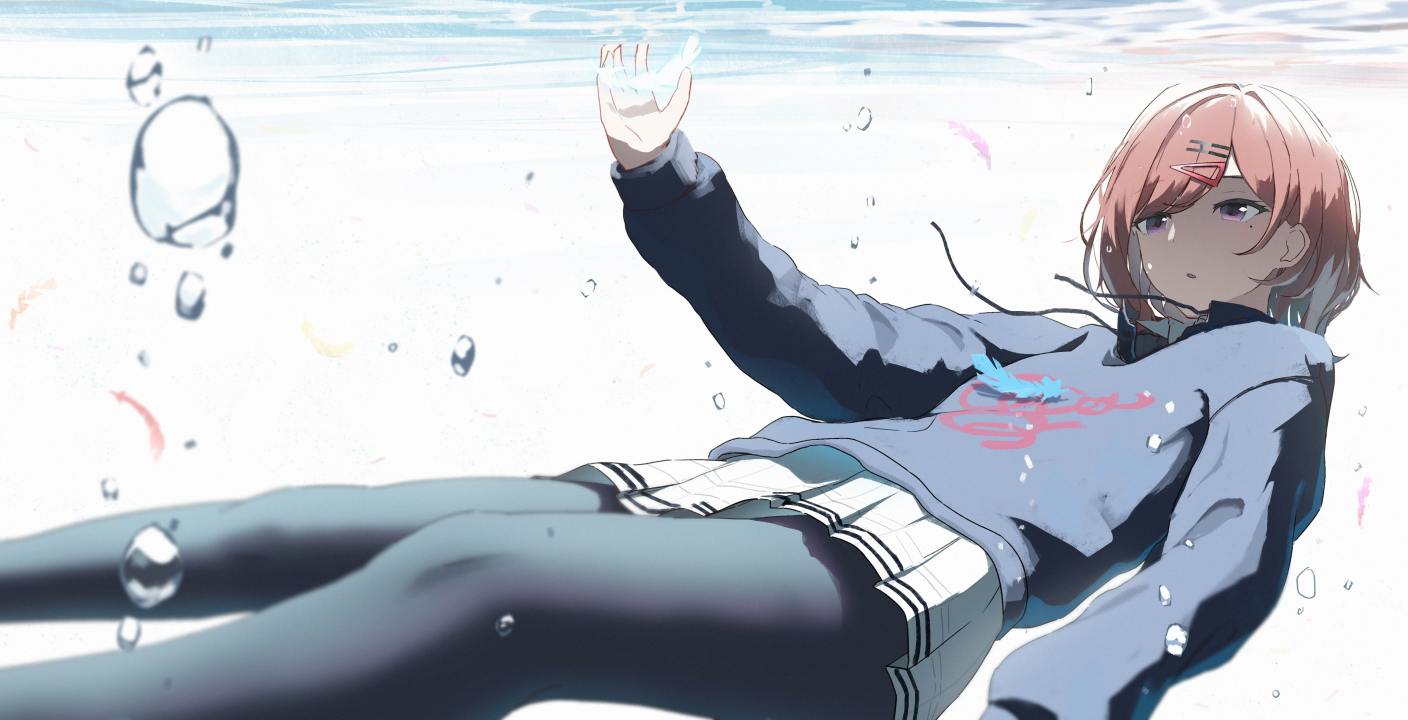 动漫女孩在水下漂浮