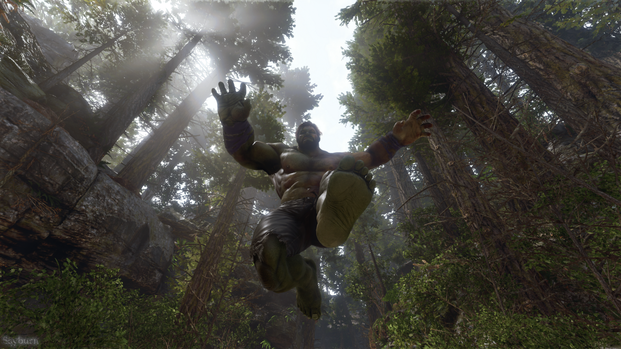 超级英雄、跳跃、虫眼、森林、树叶、屏幕截图、漫威、漫画、树、绿巨人、正面视图