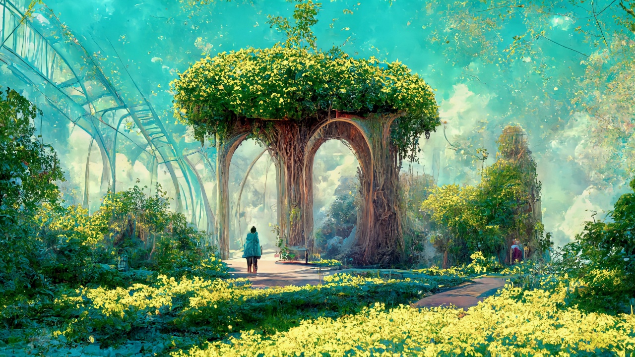 植物、自然、花园、穹顶、花卉、结构、树木、灌木、人工智能艺术