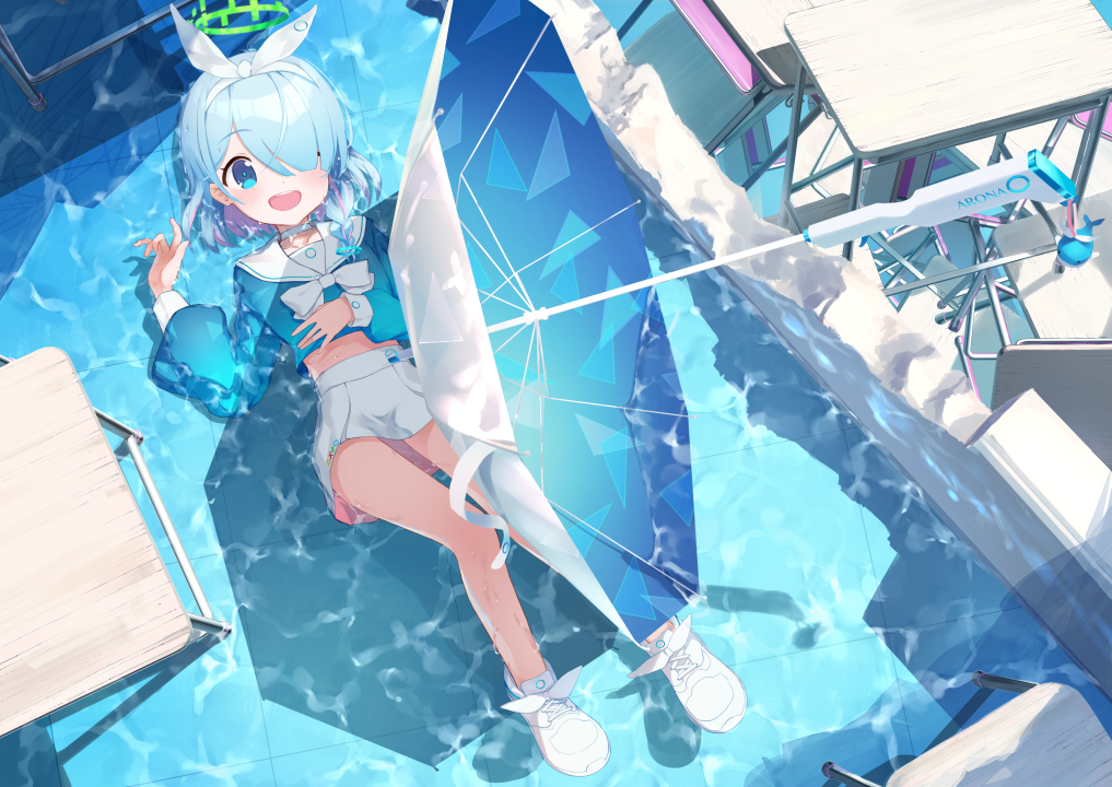 蓝眼睛、蓝头发、女学生、蔚蓝档案、动漫女孩、校服、动漫、游戏、水手制服
