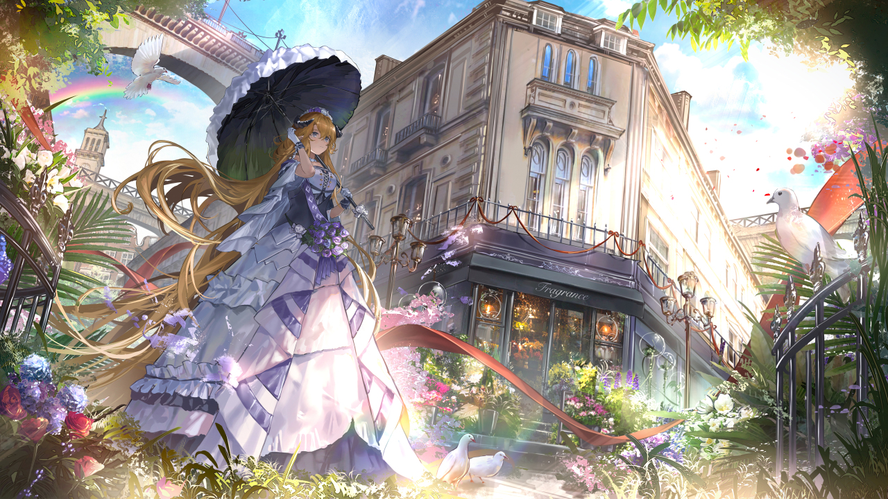 长发、金发、动漫、女孩、帆船、建筑、雨伞、衣服、彩虹、鸟、手套、城市、街道、鲜花