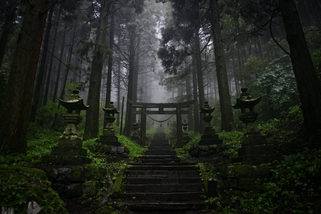 森林、寺庙、热带森林、亚洲、黑暗、薄雾
