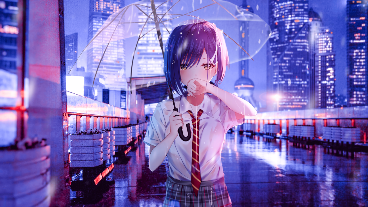 雨伞、下雨、哭泣、城市灯光、白色衬衫、电脑贴纸、8、K贴纸