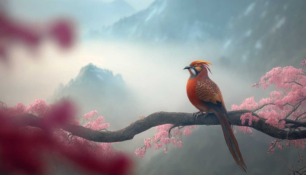 栖息在花枝上的美丽鸟儿