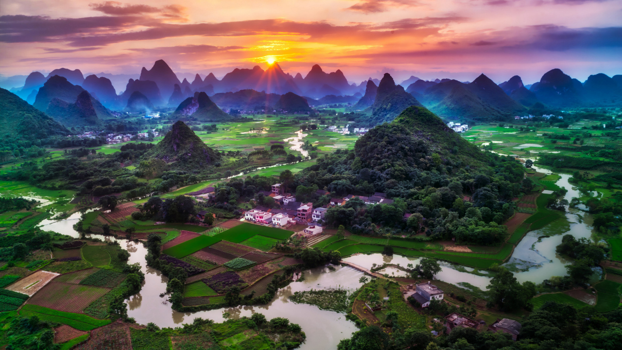 摄影、中国、风景、城市、景观、山、田野、房子、水、河、桂林、自然