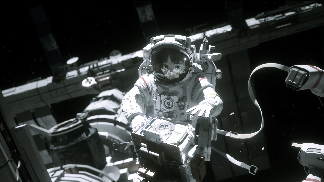 宇航员、新奇、宇宙、宇航服、空间站、动漫女孩