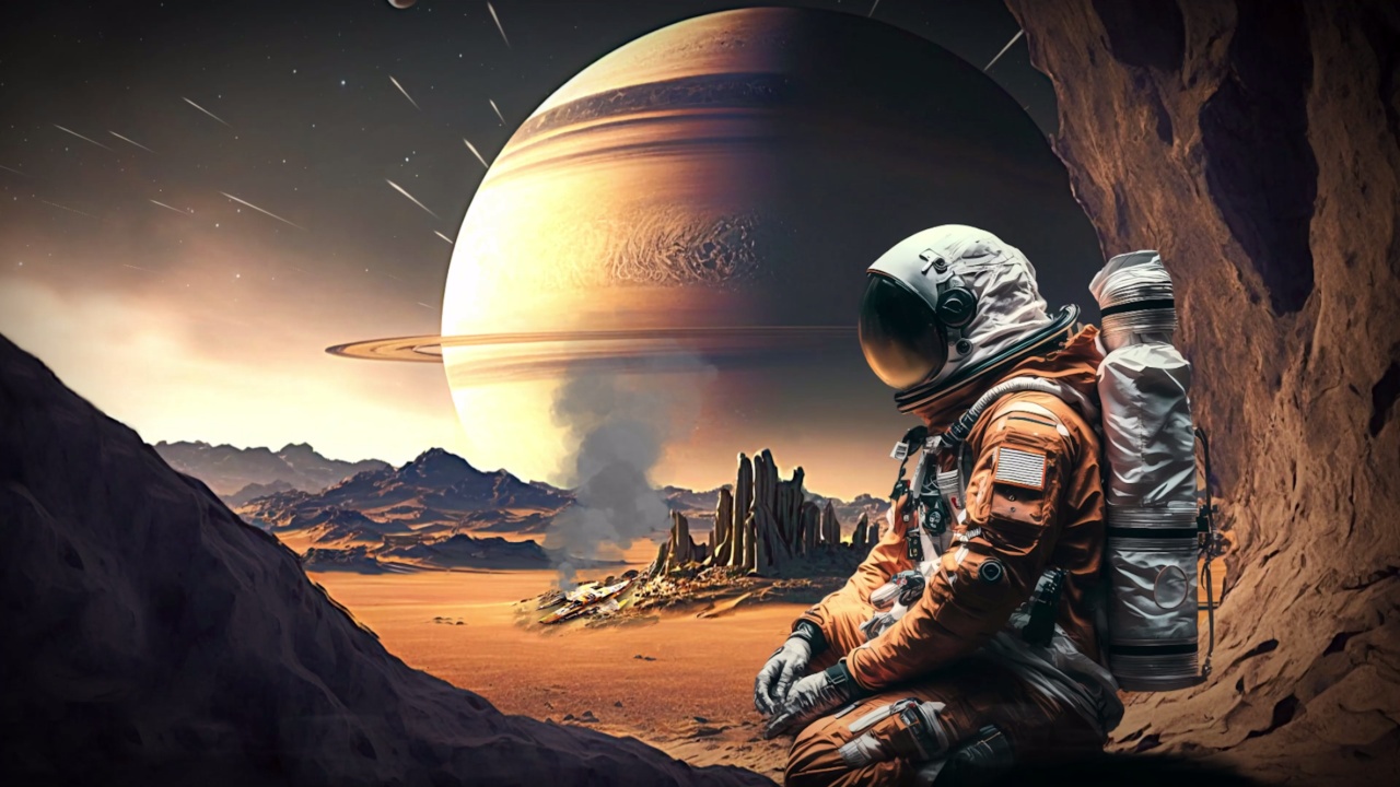 宇航员坐在岩石上