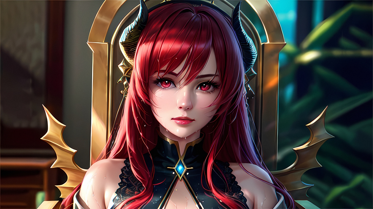 女性、龙女、艺术、喇叭、动漫、女人、龙角、王座