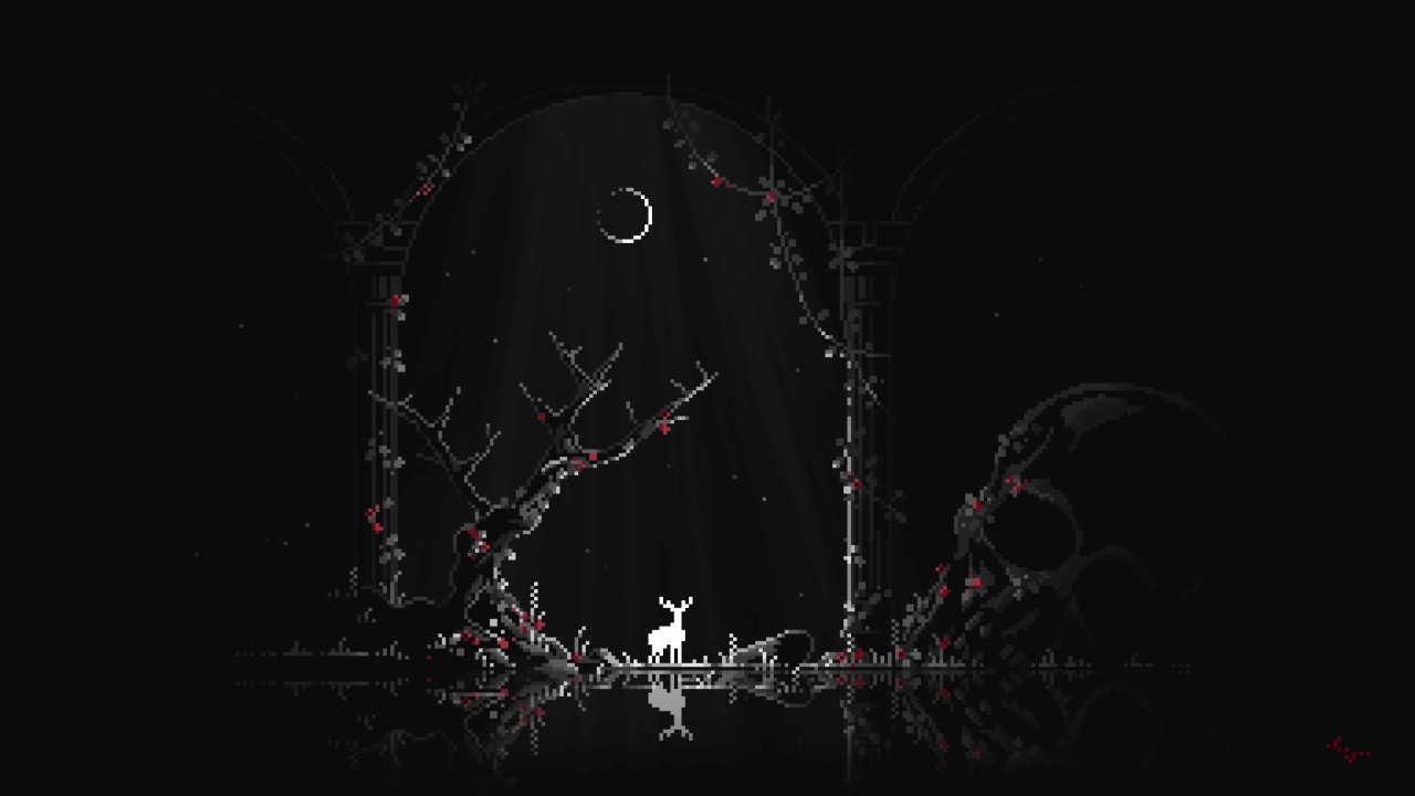 鹿、倒影、新月、数字、艺术、艺术品、像素